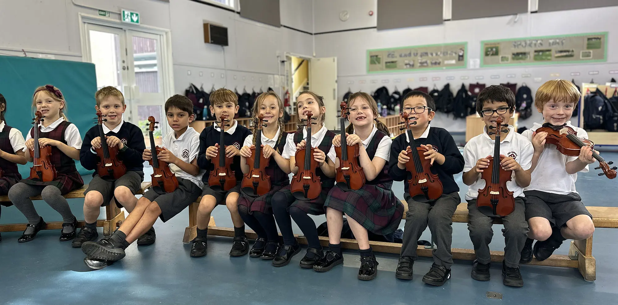 Pupils are learning to play 'Toots' and 'Doods'- fun, accessible instruments that pave the way to the clarinet and flute, alongside their very own shiny new violins.