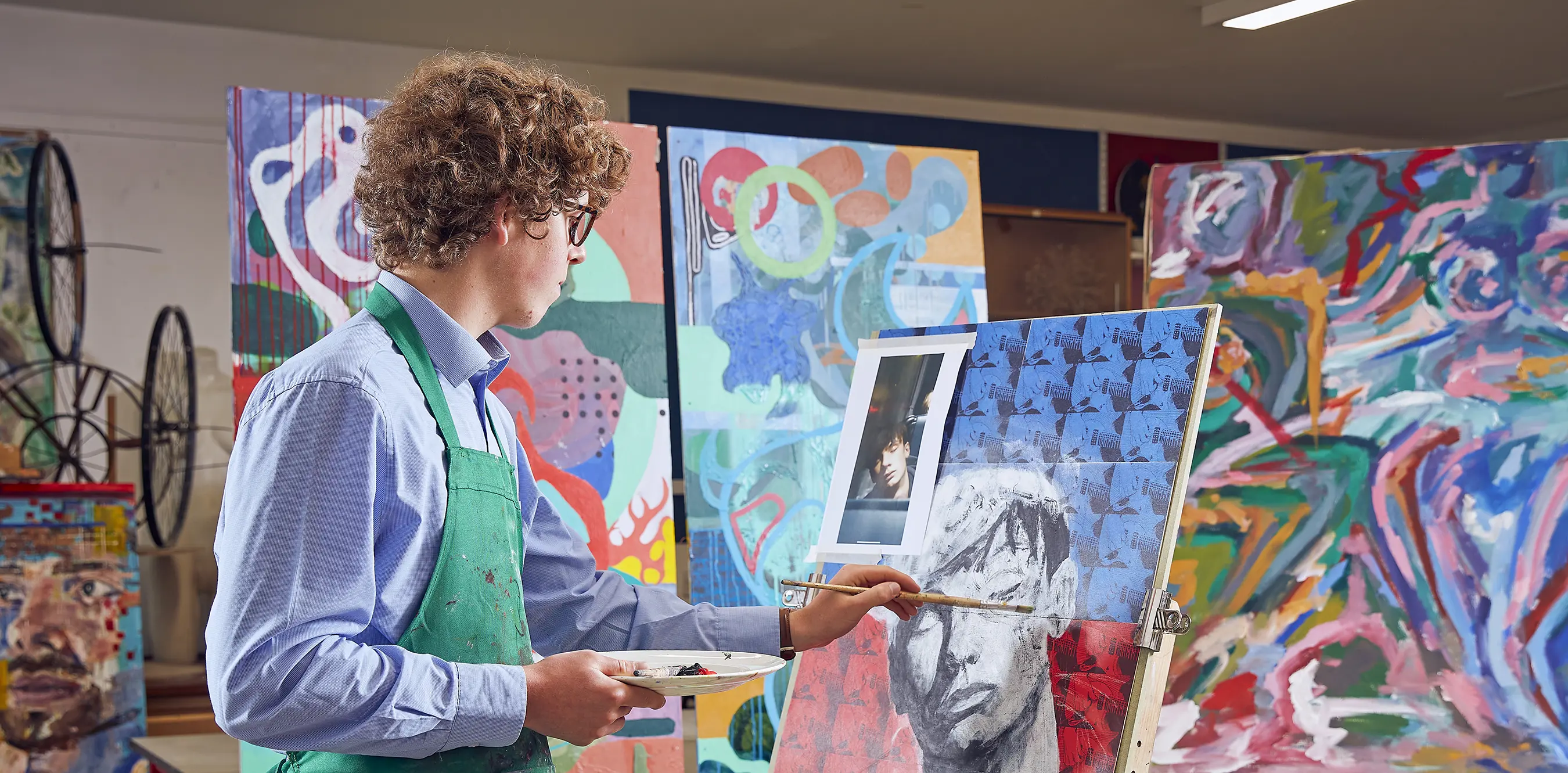 A key aim of the department is to nurture pupils’ appreciation of art by introducing them to a range of materials, processes and artistic traditions. Through studying the work of others and engaging in their own practice, pupils gain a deeper understanding of visual language and the value of the creative process. Making art provides a sense of joy, discovery and momentum as ideas take shape. The act of creating is often absorbing and mindful, giving pupils space to slow down and think differently. Moments spent fully engaged and being “in the flow” help pupils experience concentration, intrinsic motivation and the quiet satisfaction of seeing an idea emerge.